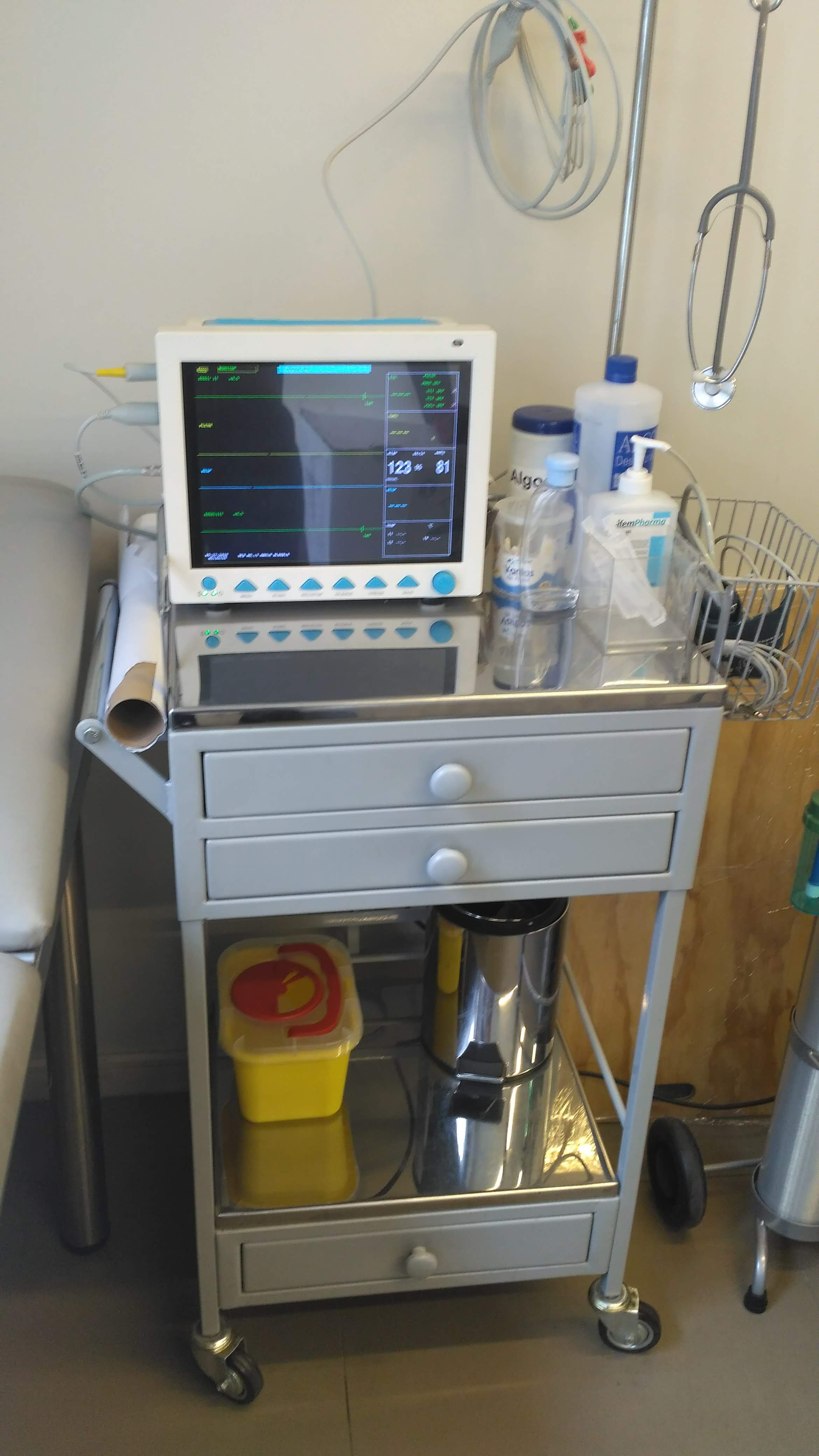 En ese sentido, en el último mes se ha incorporado un monitor de signos vitales y toma de electrocardiograma, que permiten detectar y enfrentar en una primera instancia una emergencia cardiaca, junto con un tanque de oxígeno portátil. Estos nuevos elementos se suman a otros equipos con los que ya contamos, como un moderno desfibrilador y diversos implementos destinados a poder atender casos de urgencia.